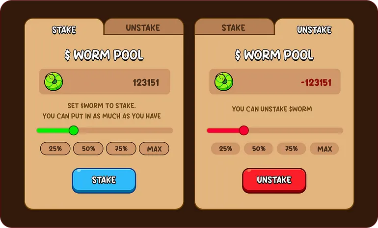 - $WORM Staking: The value is determined by the amount of $WORM deposited. $winG is awarded based on the staked amount.