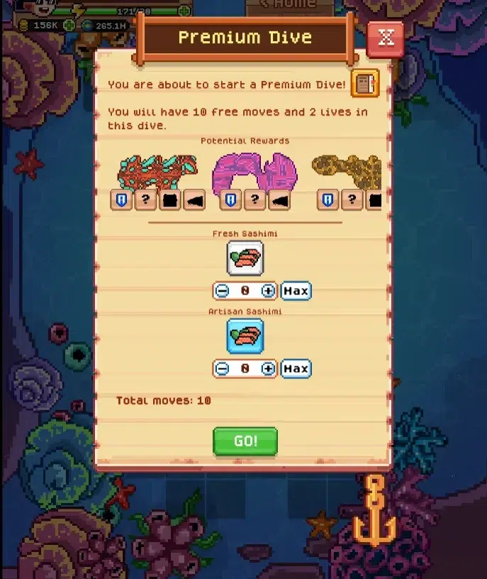 • Regular Dive: Uses in-game gold