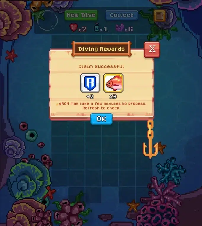 Dives can be exited early after one complete coral has been revealed, allowing collected rewards to be secured. Sushi and sashimi items increase the number of available moves. Premium dives offer the largest possible payouts, including up to 2,000 $RON, making Diving a major addition to Fishing Frenzy’s play-to-earn economy.