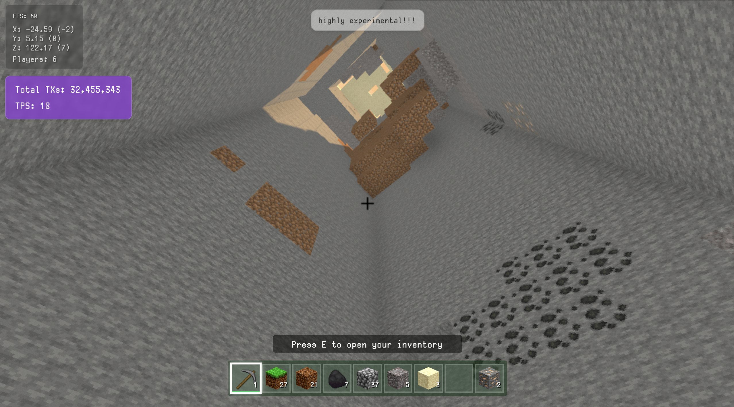 - Build: Select blocks (1–9), then right-click to place