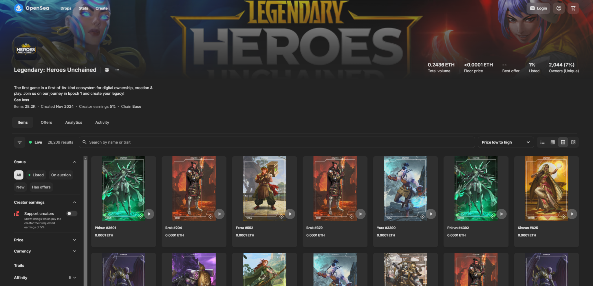 - Heroes: Each hero is unique, with specific stats, abilities, and affinities. Players can level up and customize their heroes, and these changes are permanently reflected in the hero’s NFT metadata. Heroes are tradable, with their progression carrying over to new owners. Explore Heroes Collection