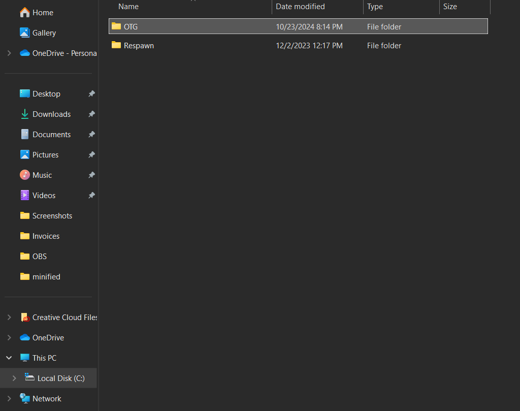 - Open the OTG (Off The Grid) folder within Saved Games.