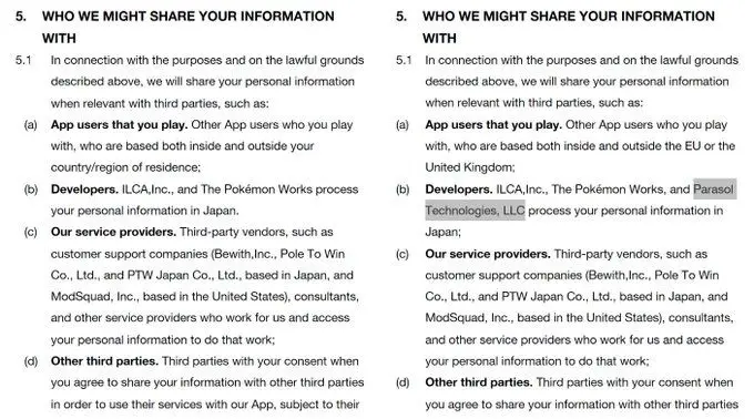 Still, this is all a long shot. The company has been slow to adopt any trend that risks alienating its massive, largely traditional fanbase. Web3, for many, still carries a stigma. And to be clear: the addition of Parasol Technologies to a privacy policy does not mean Pokémon is launching NFTs next week. It could just as easily be a simple development partnership for UI updates, new features, or internal tooling.