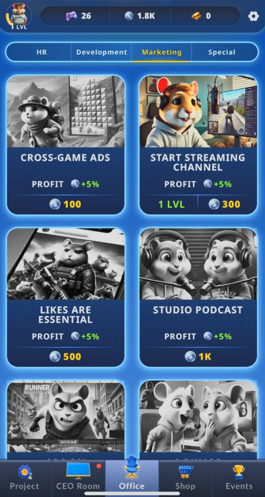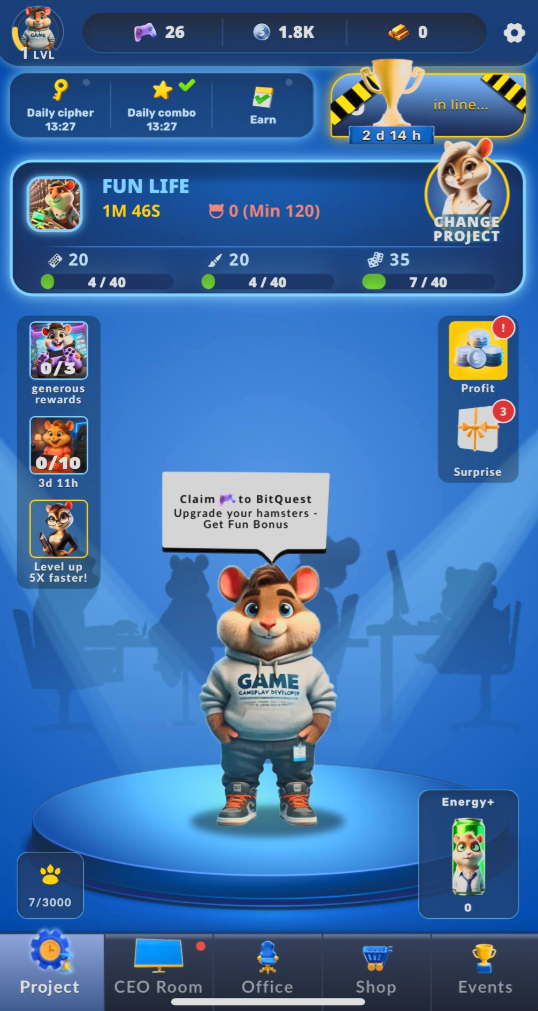 The key to earning more in Hamster Kombat: GameDev Heroes is staying active and strategic. Start by tapping your hamster to generate coins, then reinvest those into exchange upgrades and department expansions. Daily combos and cipher codes offer easy boosts—earning you gift boxes and gamepads that can speed up your progress.